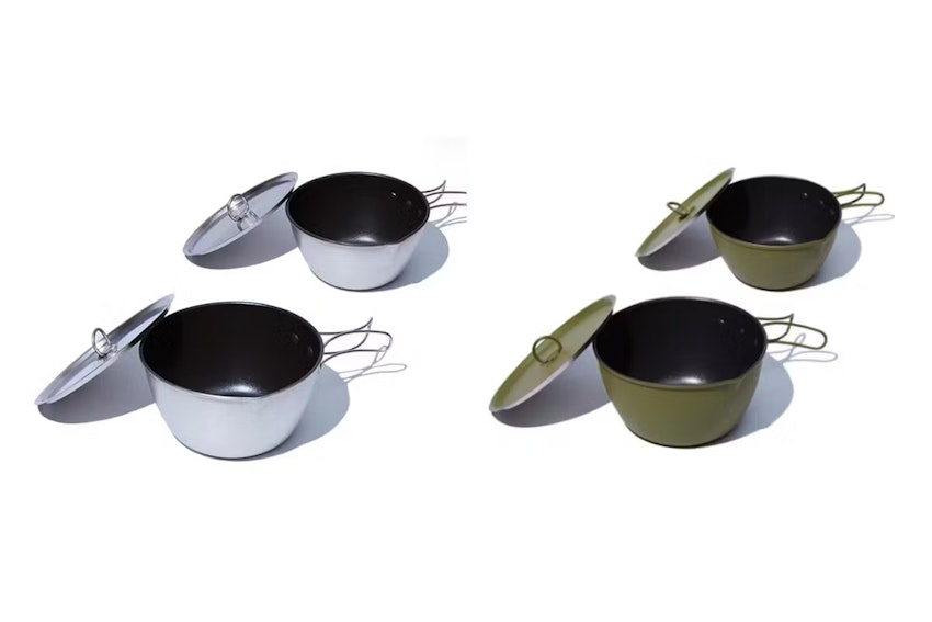 ものづくりの町・新潟県燕三条で作られたソトレシピこだわりの「シェラどんぶり2レギュラー&ジュニア」(シルバーorオリーブグリーンからお選びください)
