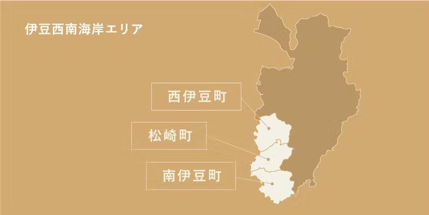 静岡県西伊豆町・松崎町・南伊豆町からなる伊豆西南海岸エリア。