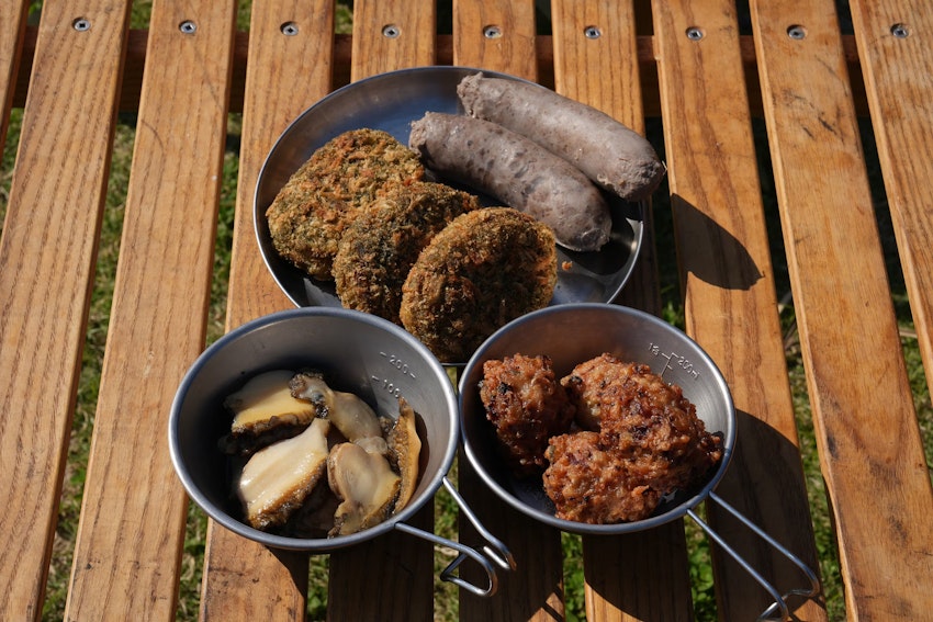 ┗伊豆の極めし2×4食+酒蒸しアワビ1袋+イカメンチ1パック(4個)+川のりコロッケ5個+鹿ソーセージ2本