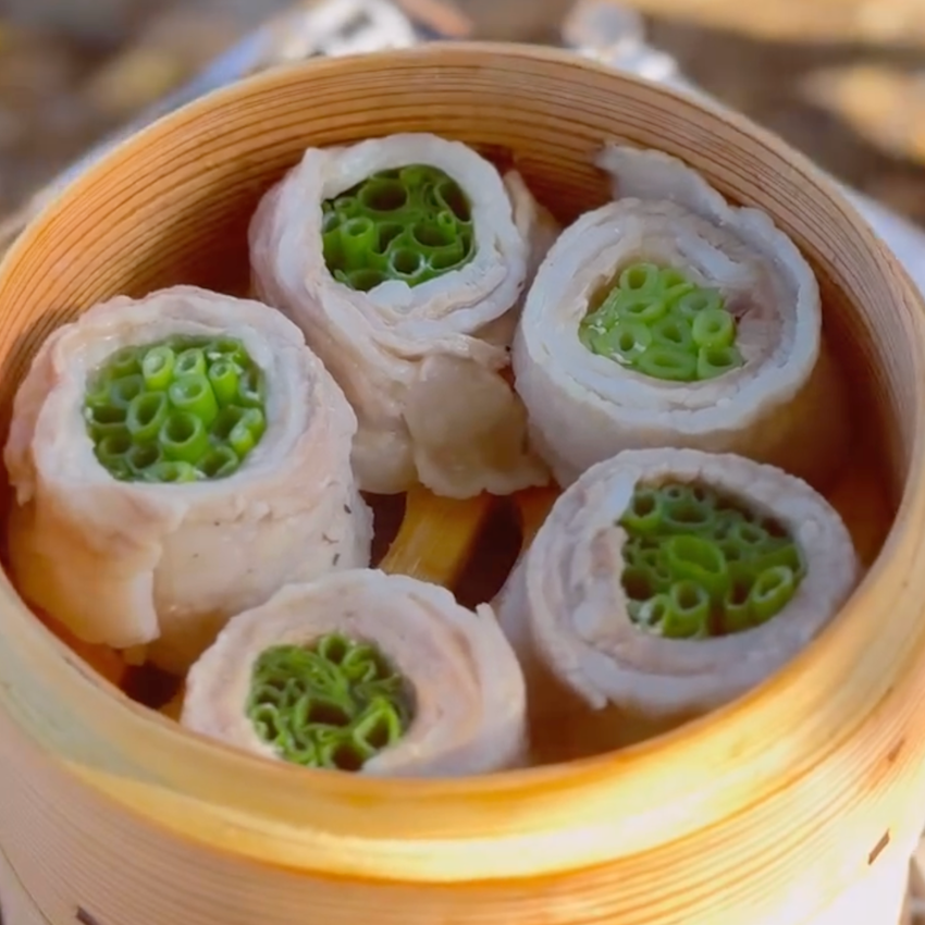 敢闘賞3人目は、@yuya.outdoorlifeさんの「小葱の豚バラ巻き 胡麻味噌だれ」です!シェラカップとせいろを使ったアウトドアな蒸し料理がヘルシーで美味しそう!自宅でも気軽に試せますね。