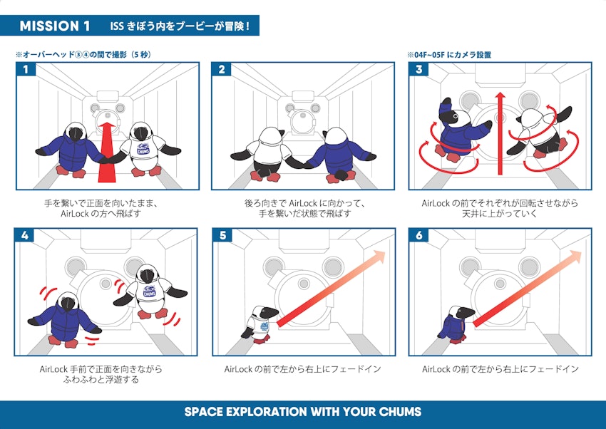 CHUMS(チャムス)のブランドのマスコットキャラクター、ブービーバードのぬいぐるみ 2 体が、同ブランドが展開する「SPACE」シリーズの Jump Suits と Space Booby T-Shirt を着用し、国際宇宙ステーション(ISS)内の「きぼう」日本実験棟にて動画撮影を行います!