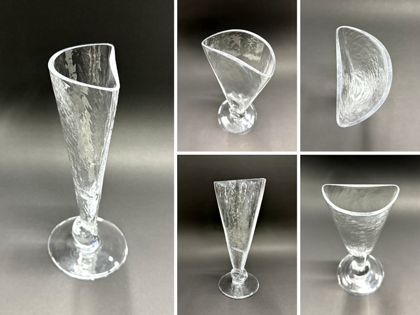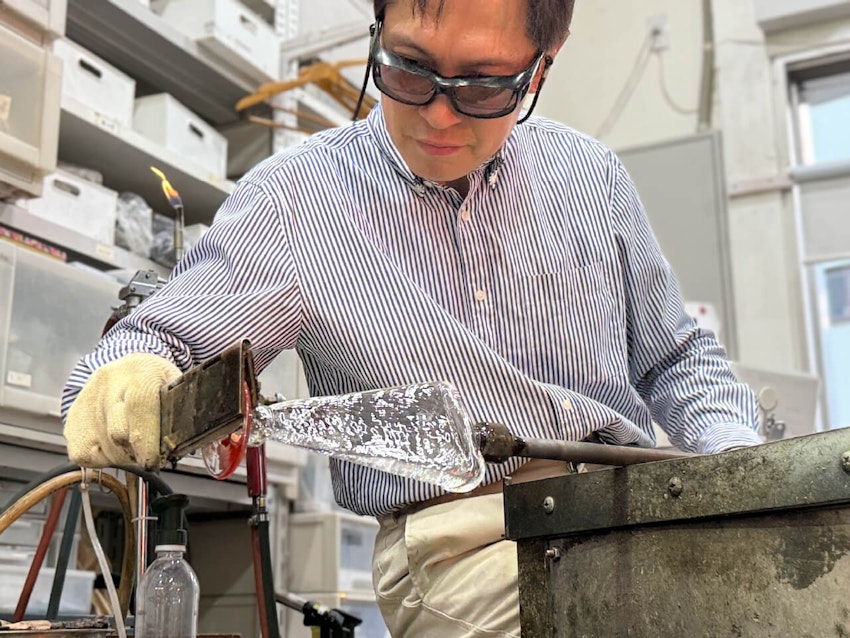 さまざまなガラス工房や事業所に問い合わせて試行錯誤を繰り返すこと約1年。東京・中野にある「なかむら硝子工房」のガラス職人・中村昌央氏の協力のもと、伝統的な吹きグラスの手法と、究極の職人技を組み合わせることによって「まっぷたつなグラス」を実現させる製法を確立。