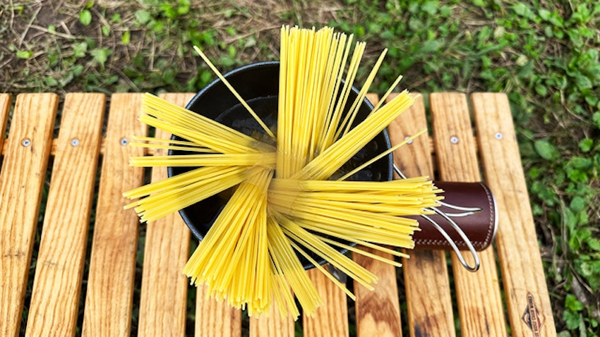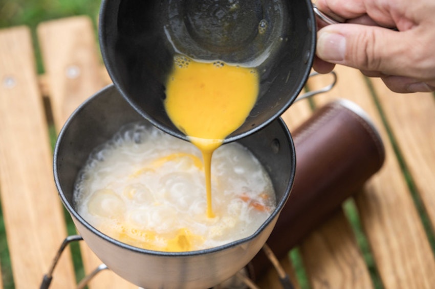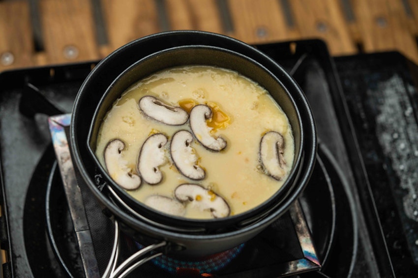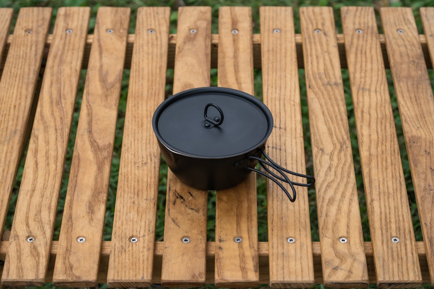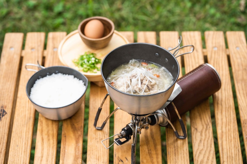 そのまま煮込んで食べるもよし、アレンジして食べるもよし。火から外して、そのまま取っ手を持って食べられるので、洗い物を減らしたいキャンパーさんにおすすめ。ソロキャンプの食事としても最適です。