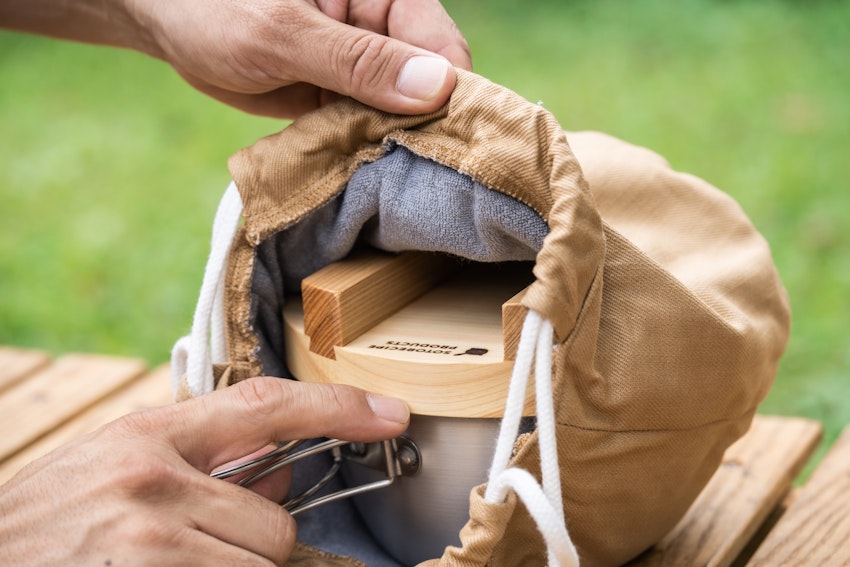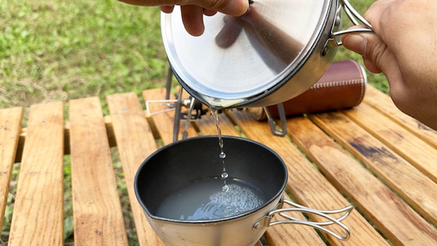 キャンプの楽しみといえば、そうお酒。これからの寒い季節は体が温まる「熱燗」が飲みたいという人もいるのでは?シェラどんぶり2ではこんな使い方もできるんです。ぜひお試しください。