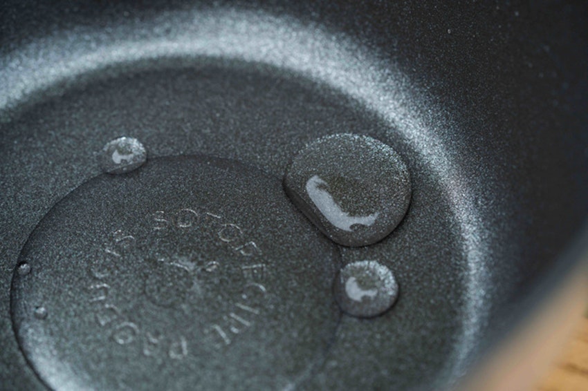 油をひかずに目玉焼きを焼いても……、このようにするりと取れて焦げ付きません。