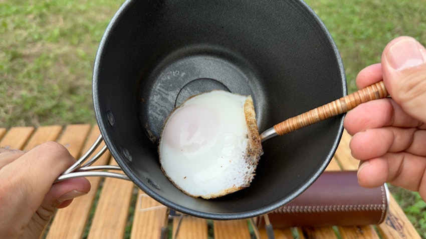 お湯が出ないキャンプ場では洗い物がちょっと大変。特に、これからの寒い季節、冬キャンプでの洗い物は辛いですよね。そこで、シェラどんぶり2では、中面に「フッ素コーティング」を採用。ごはんも炒め物も、飛躍的に焦げつきにくくなりました。