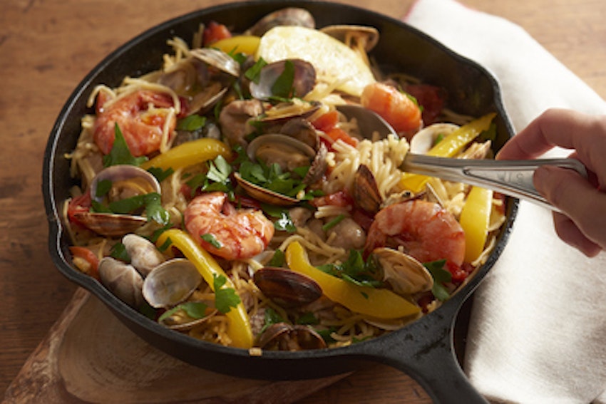 パエリアはサフランを使って作ろうとすると手間がかかって大変。そこで、市販の「パエリアの素」を使うと材料に混ぜて炊くだけで手軽にサフランライスができて便利。S&B シーズニングミックスシリーズがオススメ。