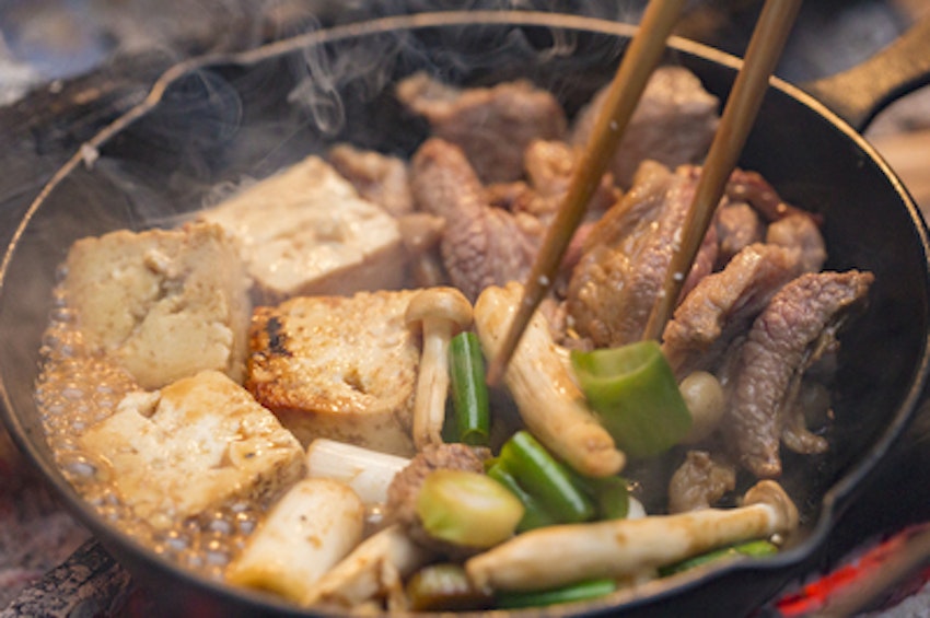 肉や具材を追加しながら、お酒とともに楽しむのがオススメ。肉を加えるときは砂糖、しょうゆを少しずつ加えて味を調えながらいただく。
