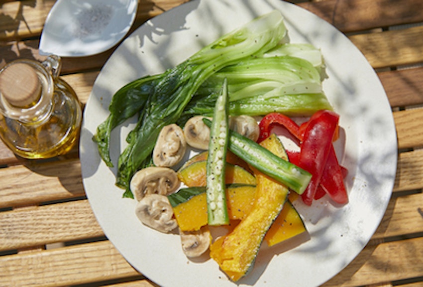加熱することでかさも減り、たくさんの量のお野菜を食べることができます。固い野菜があれば、少し加熱して調節します。もしくは、火からおろし、余熱で火を通しましょう。