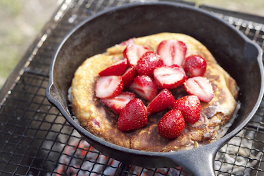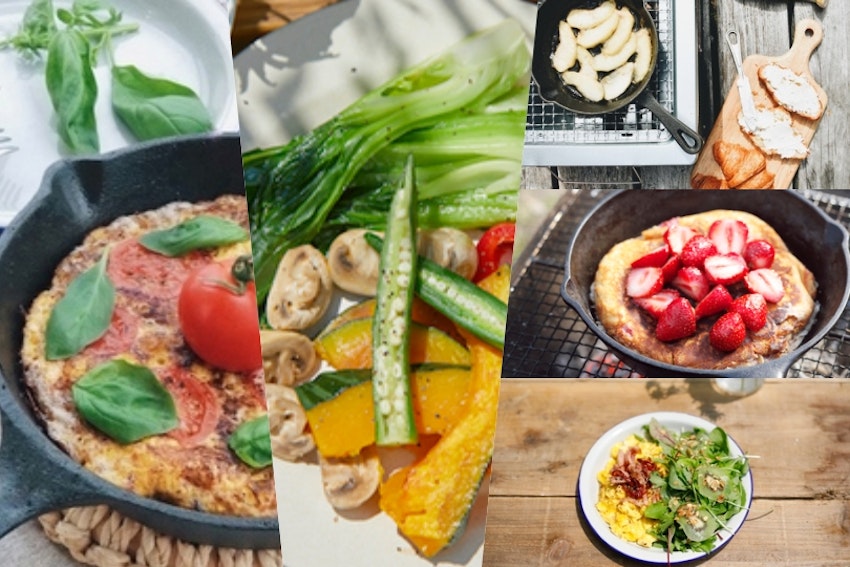 それでは、スキレットで作る簡単でおいしいレシピを紹介します。まずは、朝ごはんにぴったりなレシピを5つ。オシャレな朝食でキャンプでの一日をスタートさせると気分も上がりますよ!