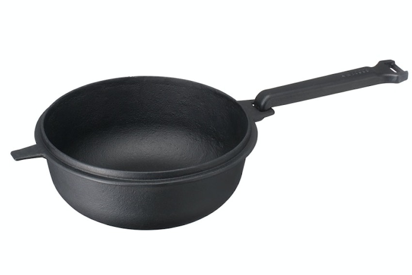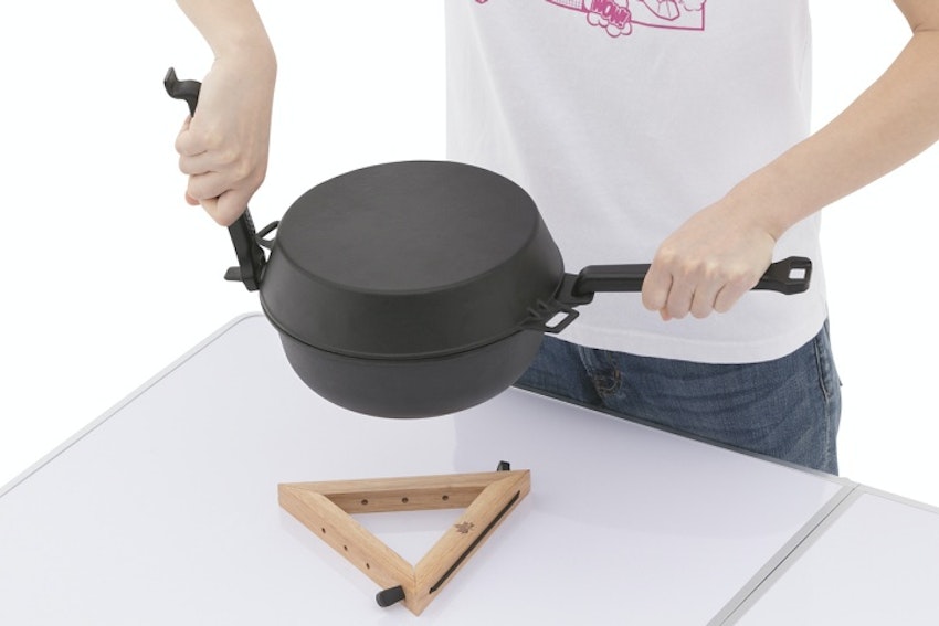 スタイリッシュなデザインと使い心地がキャンプにベストマッチする、vjectのスキレット。調理後はそのままテーブルに置いても場所を取らない、取り外し可能な取手を採用。深型の本体で調理ができるのはもちろん、フタにも取っ手をつけられるので浅型スキレットとして調理することができます。取手に装着可能なシリコンパーツは蓋に吸着する設計で、取ってから外して持ち手にもなる利便性の高いモデルです。