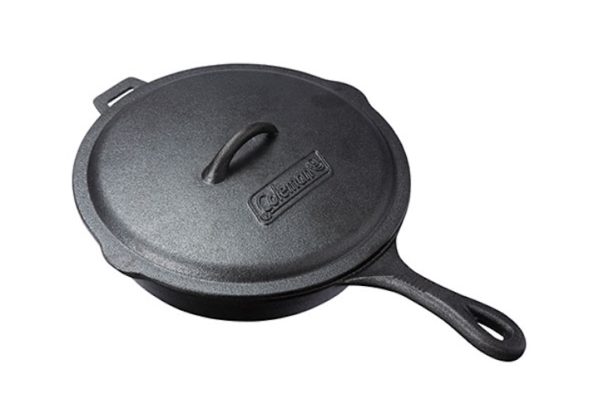 第一次キャンプブームから日本のキャンプ業界を引っ張る大人気ブランド、コールマンのクラシックアイアン スキレット。ファミリーキャンプでも使えるような大きめのサイズ感が特徴で、フタは上に盛り上がるような設計になっているのでハンバーグなど厚みのある料理もこなせます。サイドに注ぎ口が設けられているので、汁物のような水分が多い料理を作ったときも盛り付けやすいのが魅力的です。