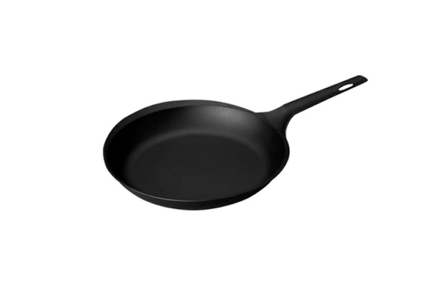機能美とスマートで生活に馴染むデザインの調理器具を展開している、フライングソーサーのスキレット。鋳鉄製でありながらもわずか0.8kgと軽量製に優れており、女性でも手軽に扱いやすい重量を実現。焼き面に施された細かな凹凸は焦げつきにくくなっているだけでなく、食材の余計な水分を飛ばしてより美味しく焼くことができるなど、細かな工夫が詰め込まれたスキレットです。