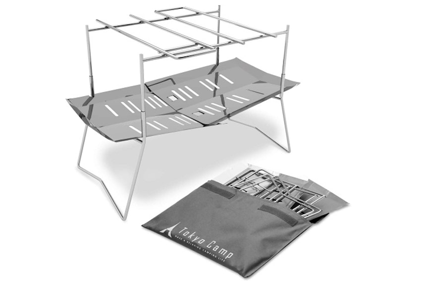 手頃な価格と使い勝手の良さで絶大な人気を誇る、TokyoCampの焚火台。洗礼されたスタイリッシュでフラットな形状が特徴。約1kgにも満たない軽量性でありつつも大きな薪を複数乗せても安定性を保つ堅牢性を実現しています。焼き網やウインドスクリーン、地面への輻射熱を抑える専用スタンドなど、焚き火をより楽しむオプションはどれも手に取りやすい価格です。