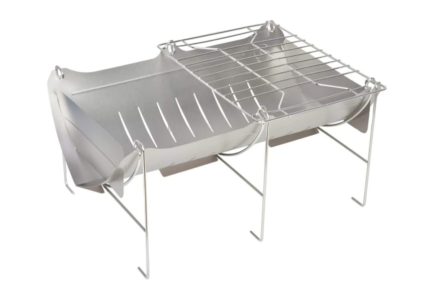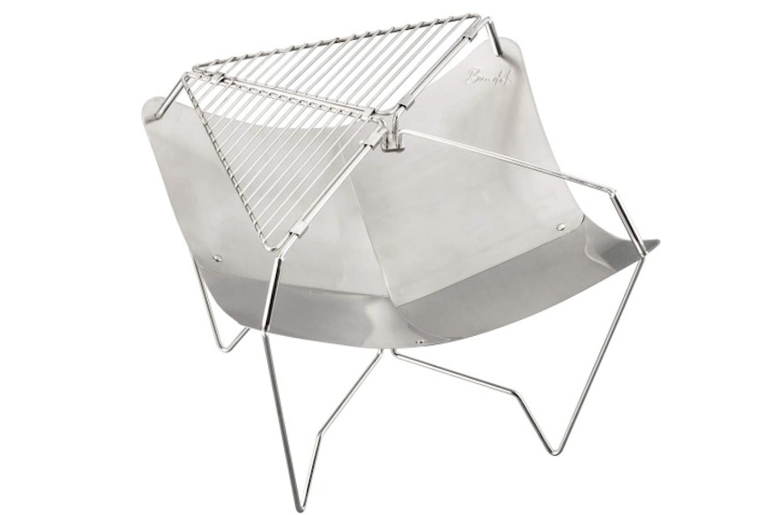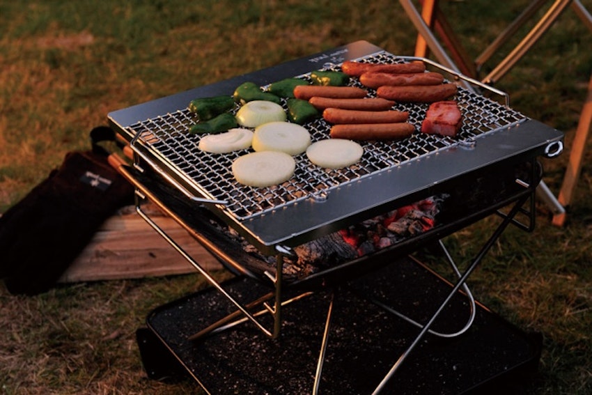 焚き火のしやすさと料理のしやすさを両立した、BUNDOKの焚き火台 Lotus。スマートなデザインながらも市販の薪がそのまま入るサイズで焚き火しやすいだけでなく、収納時は薄くコンパクトになり持ち運びのしやすさも◎。付属の網は焚き火台の半分を覆うように取り付けられるので、火加減の調整がしやすくなっている構造も秀逸です。