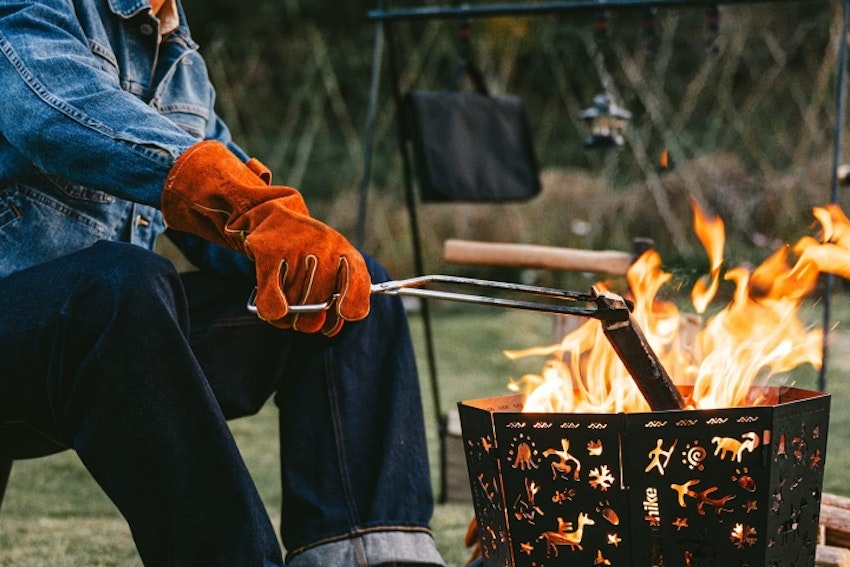 何もつけず素手で火バサミをしても焚き火はできますが、安全に配慮するなら革手袋を使うのがおすすめ!薪の配置を細かくいじろうと長い時間火バサミを使用していると、どうしても手は熱くなってしまいます。火を扱う以上、火傷には注意が必要なので革手袋も併せて用意しておきましょう。