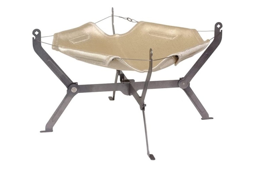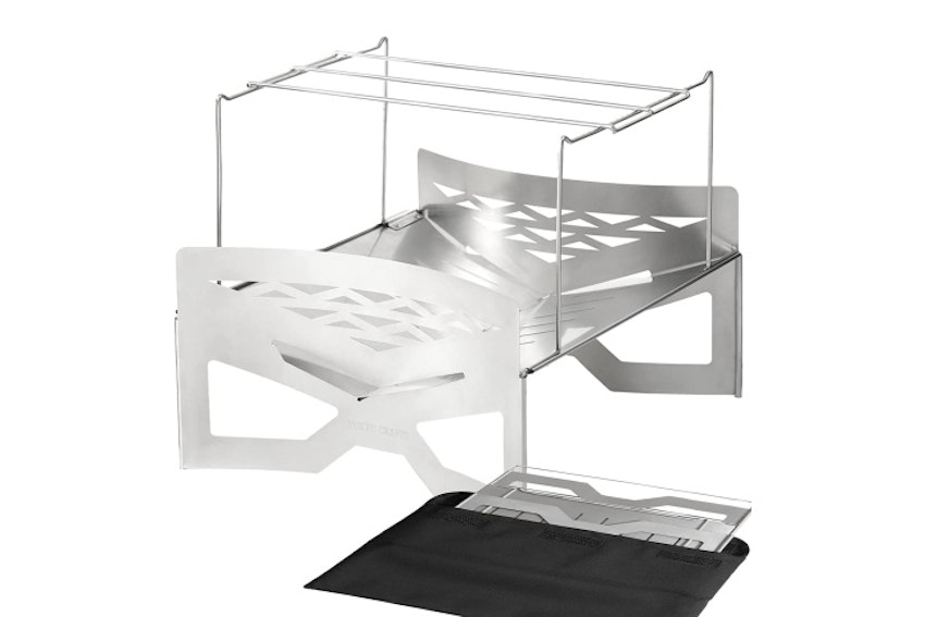 ソロキャンプに欲しいスペックを詰め合わせたスペックの焚き火台。素材にチタンを使用した本体は軽量しなやかで、薄くとも長く経年変化を楽しみながら愛用できます。好みに応じて側板を外して焚き火できます。側板を抜けば重量はわずか約298gという軽量性を実現しています。本体に固定できる網もセットになっているので調理もしやすいのも嬉しいですね。