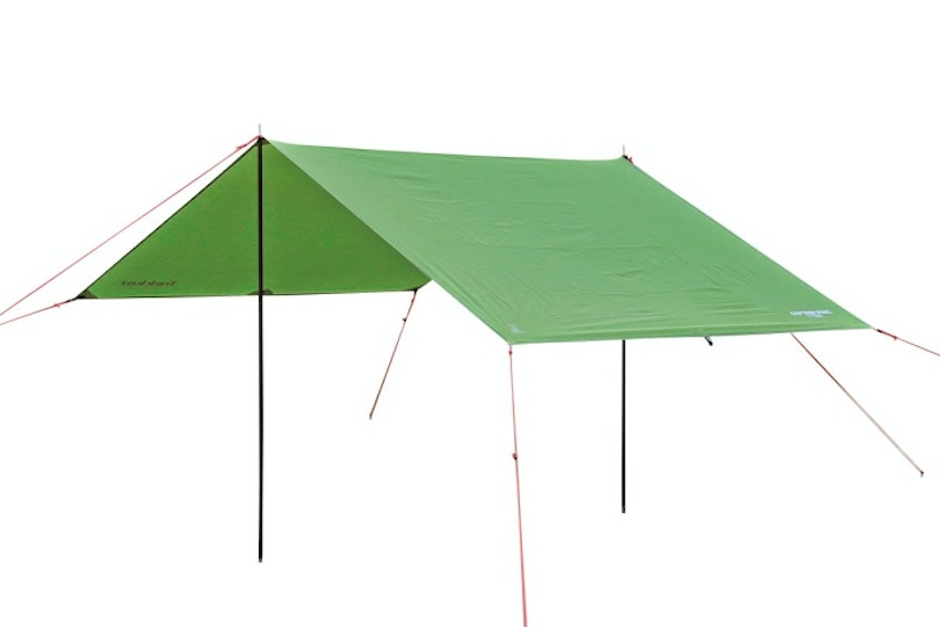 シルバーコーティング加工を施したポリエステルで2000mmの耐水圧に仕上げたタープ。コンパクトに持ち運べる収納性もさることながら、450gと優れた軽量性で移動手段を問わない便利さがポイントです。