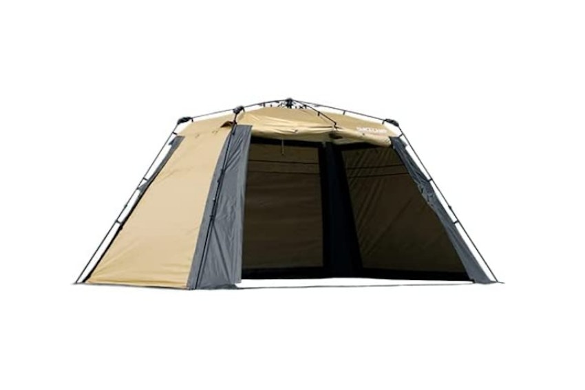 優れた遮光性で日差しをブロックすることで温度の上昇を抑え、涼しく過ごせる独自技術ダークルームテクノロジーを採用。強度の高いタープポールが2本付属するうえ、収納ケースにはコンパクト収納しやすいコンプレッションベルトがついて2万円を下回るハイコスパモデルです。