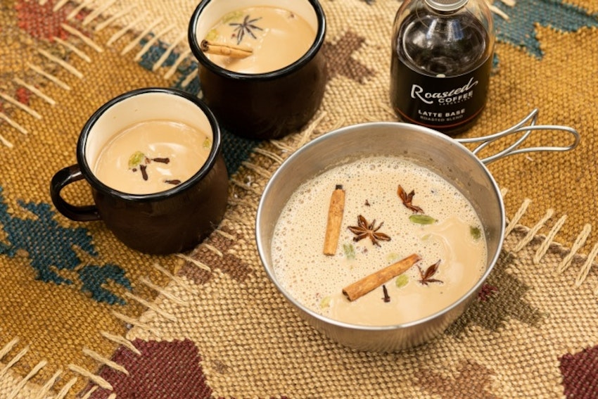 3.カフェラテベースを入れて沸騰直前まで温め、お好みで砂糖を加える。