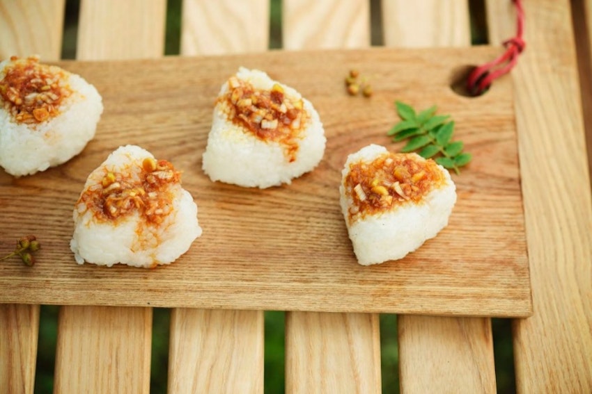 おにぎりは事前に家で握ったものを持参するか、コンビニの「塩むすび」などを買っていくと便利です。調味料も家で作り、保存袋などに入れて準備すれば、現地では焼いて味噌を塗るだけですぐに食べられます!